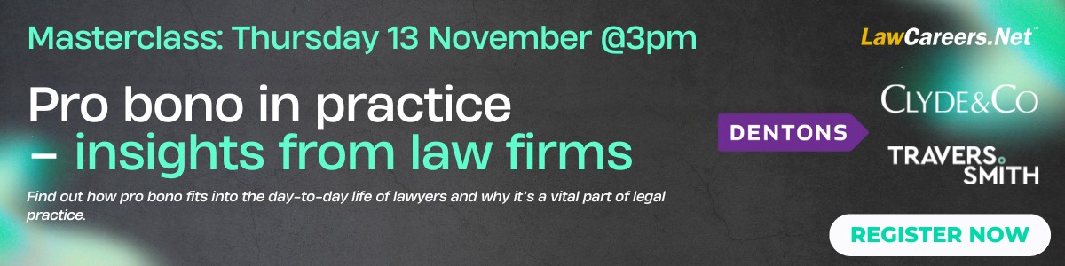In this new LawCareers.Net masterclass, sponsored by Dentons, Clyde & Co LLP and Travers Smith LLP, we’ll explore how pro bono fits into the day-to-day life of lawyers and why it’s a vital part of legal practice.